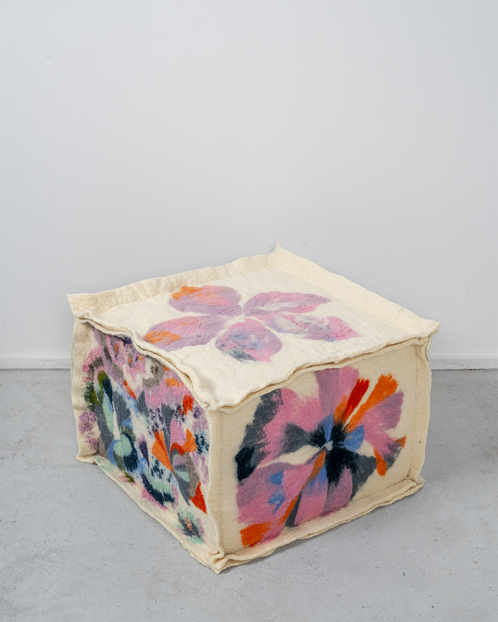 Hand-felted merino wool in various pigments, PU foam interior